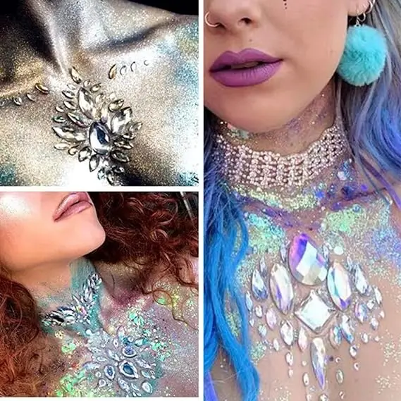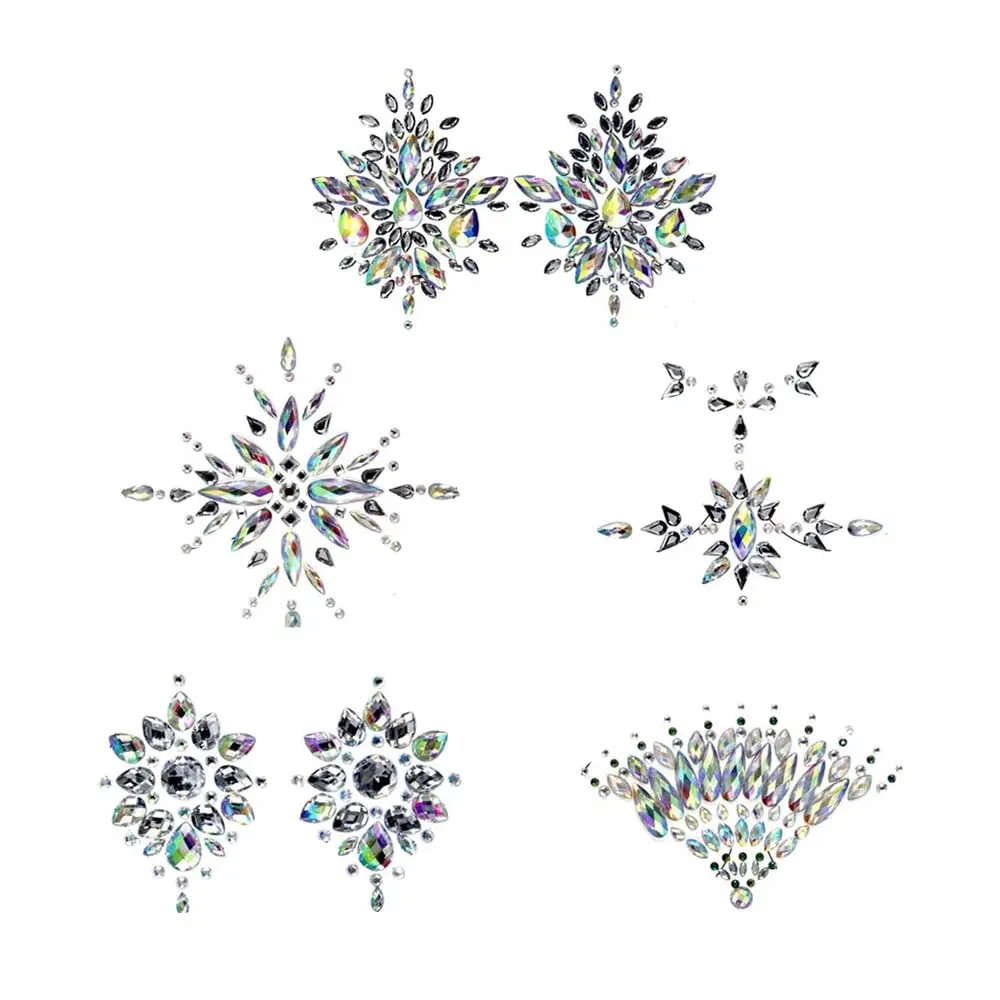 Reusable Temporary Tattoo Rhinestone 3D Self-Adhesive Nipple Pads Stickers Crystal Decals Decorative Nipple Cover for Parties