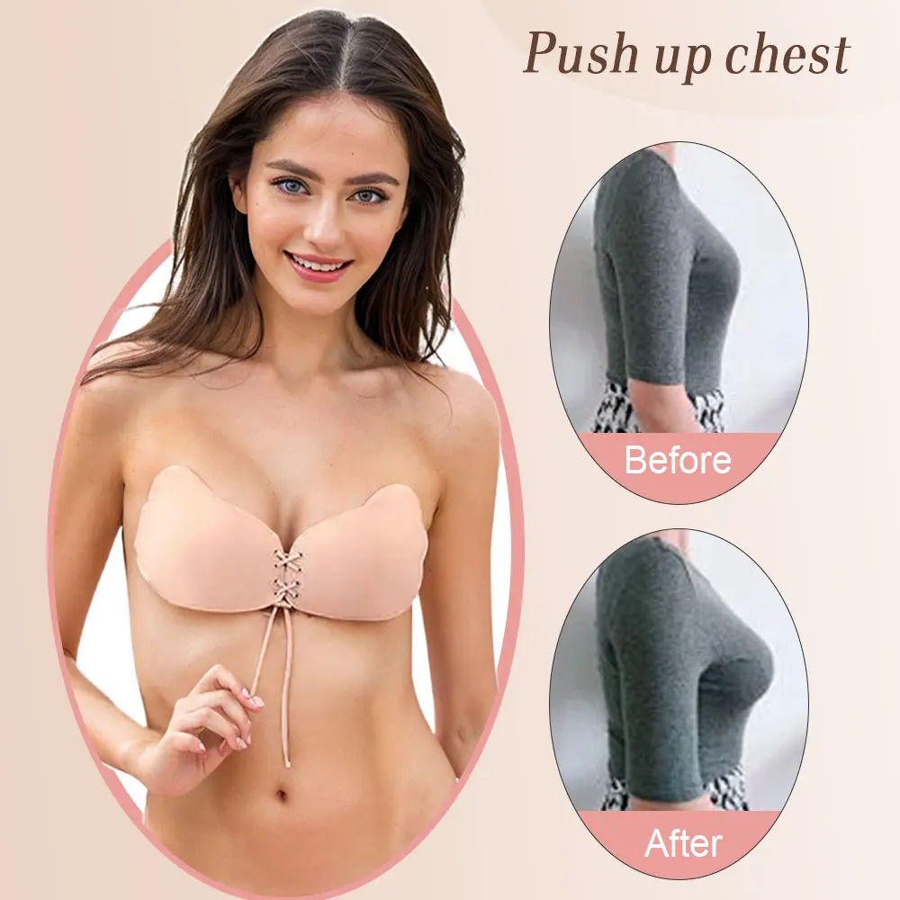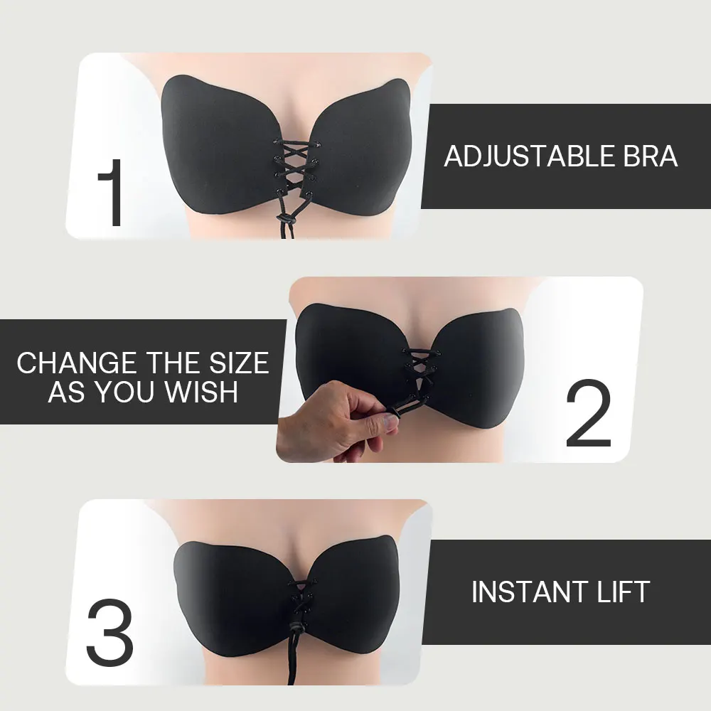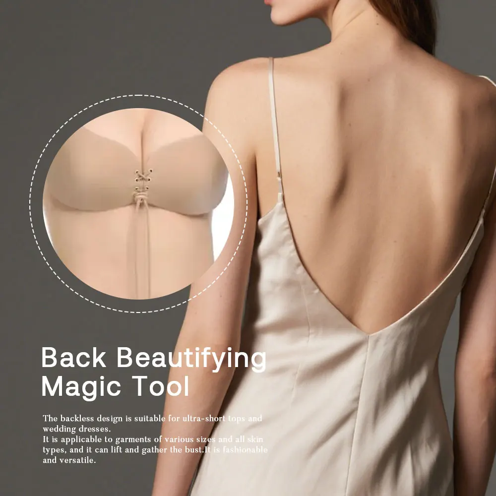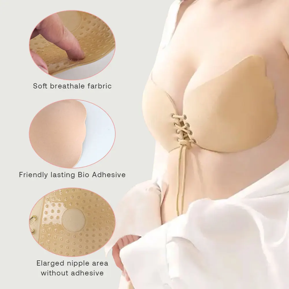 Invisible Sticky Reusable Breathable Backless Wedding Bra Strapless Push up Adhesive Bra with Wings and Adjustable Drawstring