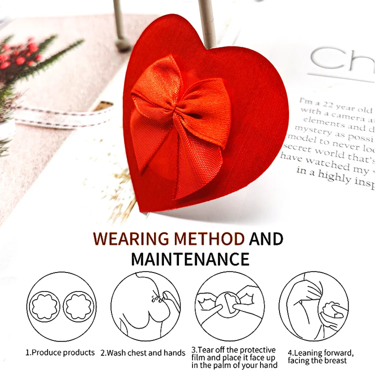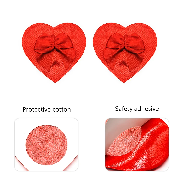 Red Bowknot Satin Sexy Disposable Skin-friendly Adhesive Breast Petal Heart Shape Nipple Stickers for Festival Rave Outfit Women