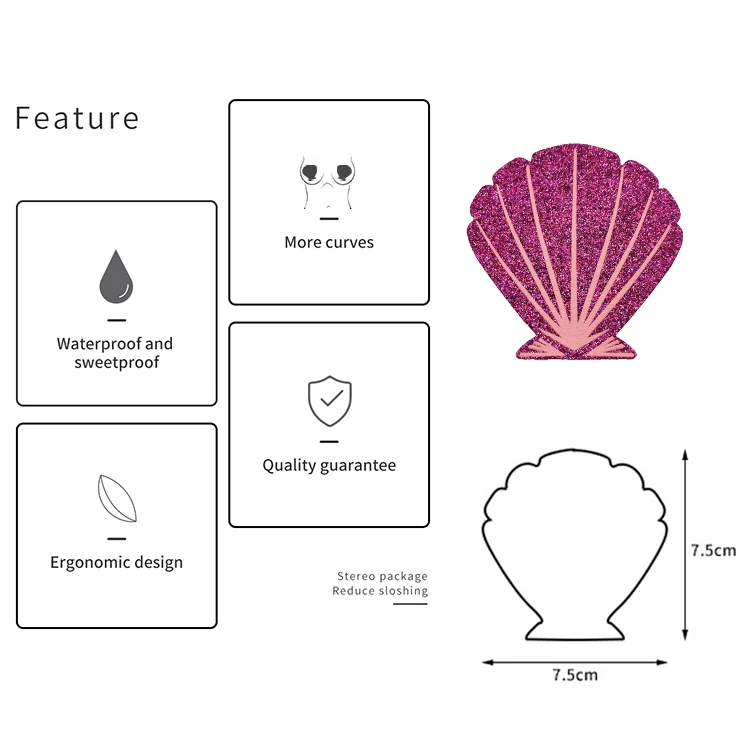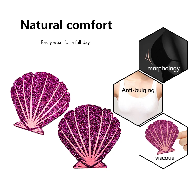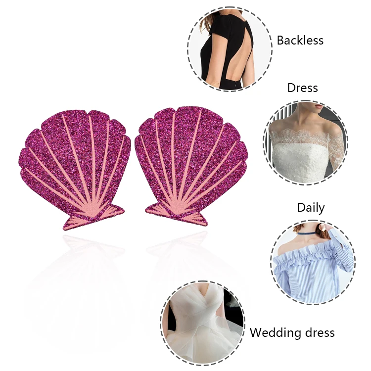 Fashion Glitter Sexy Disposable Breathable Rhinestone Sticky Breast Petals Rose Pink Shell Shape Self-adhesive Nipple Covers