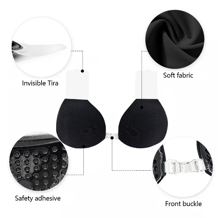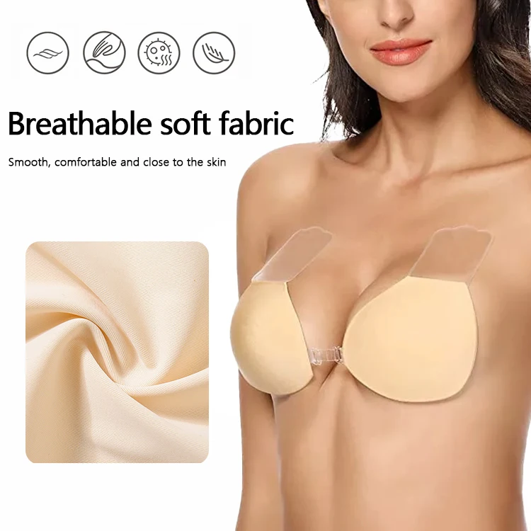 Triangle Cup Sponge Invisible Bio-glue Reusable Breathable Push-Up Adhesive Bra Clear Uplift Tape Three Front Buckles Wire-Free