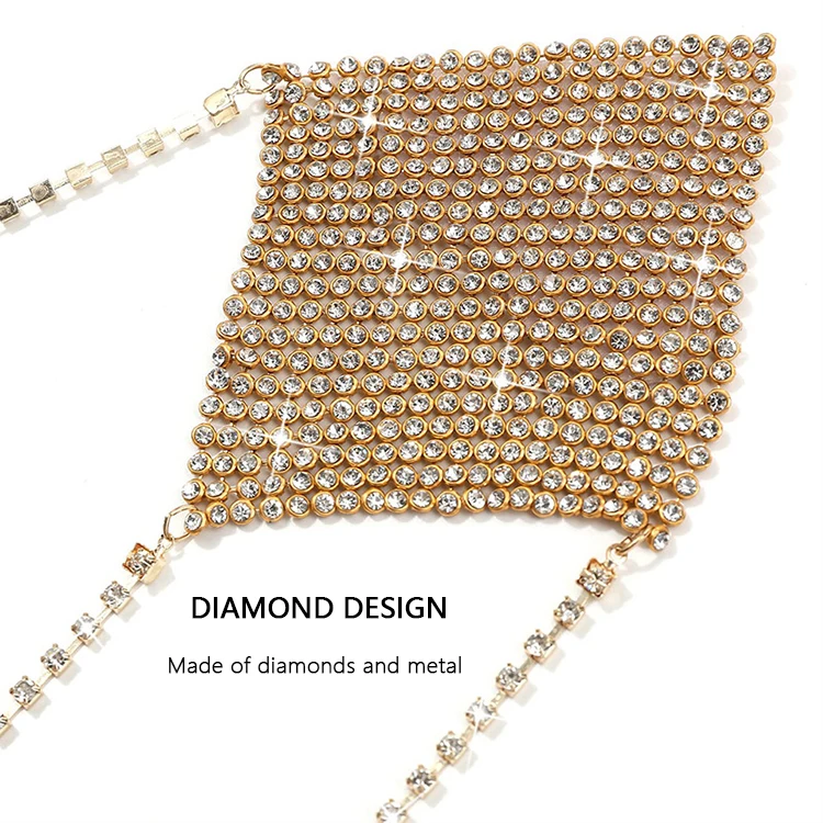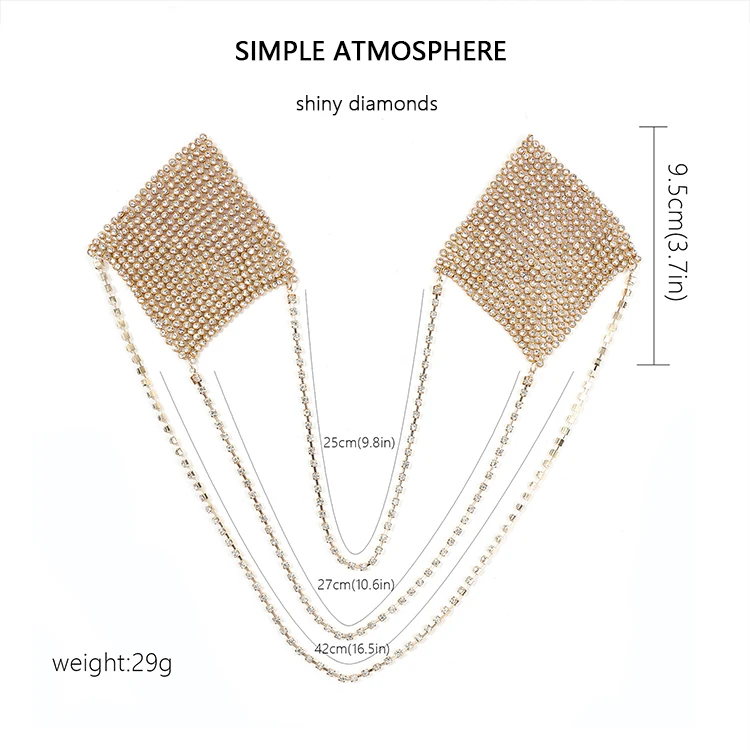 Sexy Golden New Design Reusable 3 Chains Tassels Square Crystal Beaded Alloy Silicone Adhesive Breast Petals Nipple Covers Women
