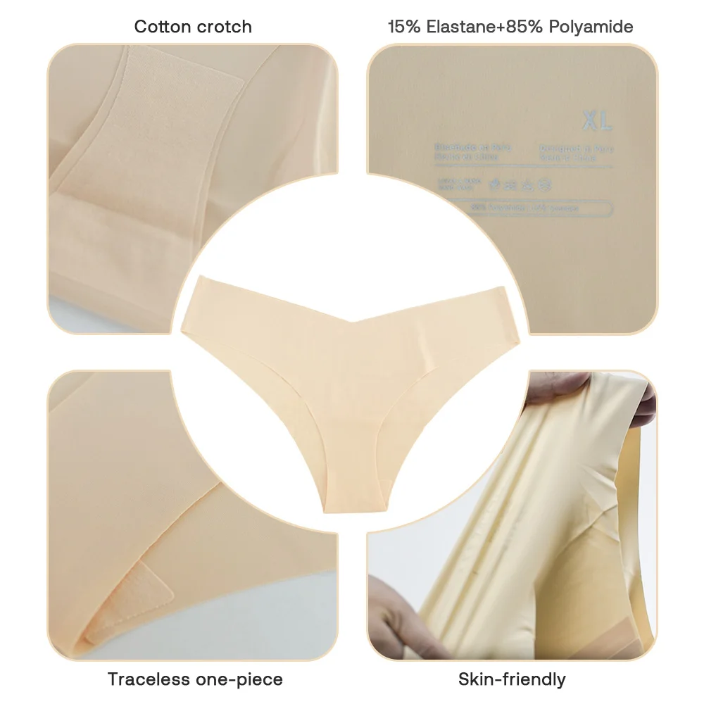Low V Shape Curve Waist Hipster Underwear Seamless Eco-Friendly Anti-Bacterial Ice Silk Smooth Fabric Laser Cut Panties for