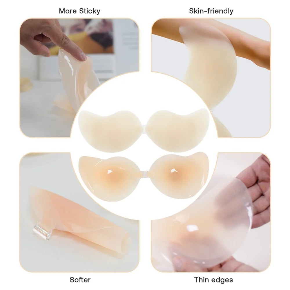 Ultra Thin Sticky Bra Seamless Strapless Mango Shape Adhesive Invisible Backless Push Gathering Breast Cup Bra Button Wire Free