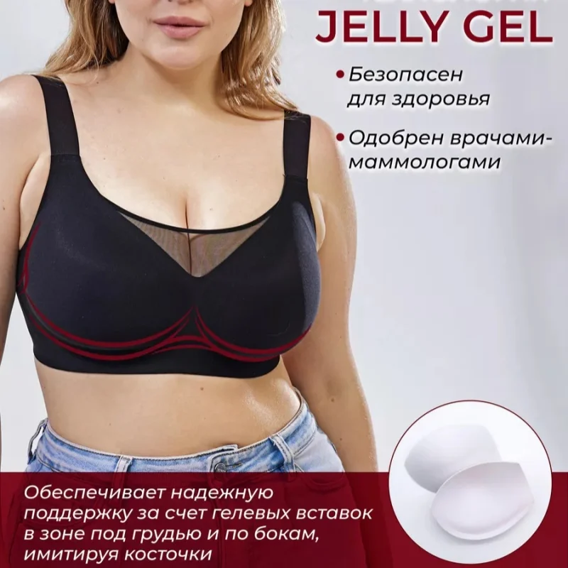 Bra Seamless Plus Size CDEFG Big Cup Wireless Soft Support Big Strip Jelly Black-Technology Traceless Invisible Mesh