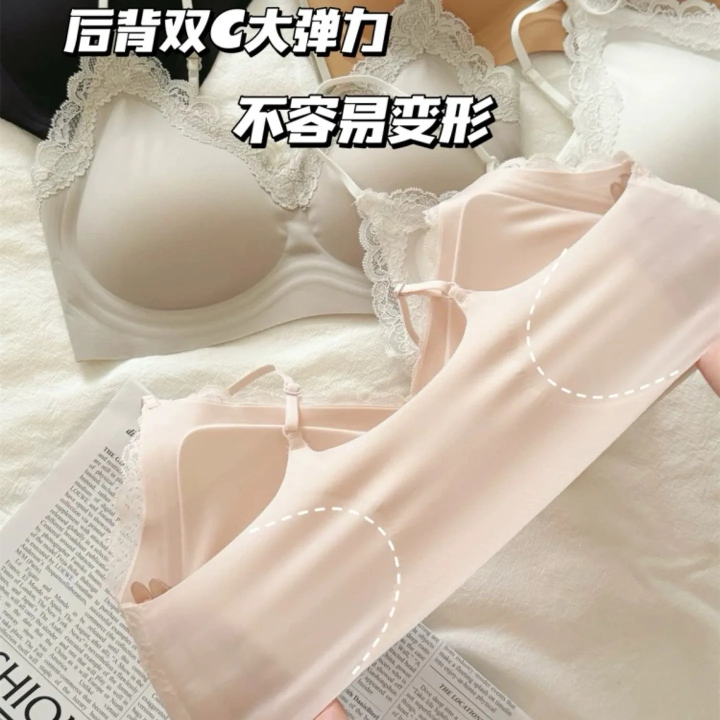 New Trend Wireless Bra for Women Custom Full Cup Ladies V Neck Support Push up Bralettes Seamless Padded Scalloped Tank Bras