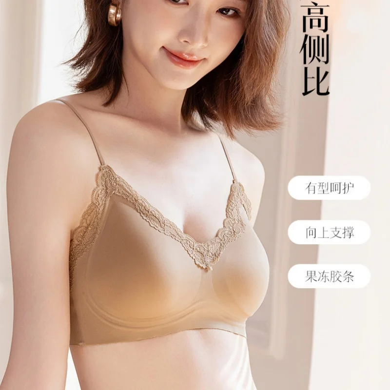 Women's Comfortable Thin Breathable Gilt Satin Seamless Latex Bra Adjustable Wireless Push-up Bra Padded Brasier Para Mujer