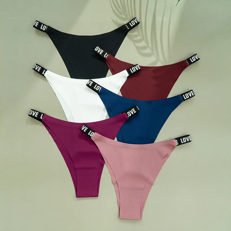 Wholesale Low Waist T-back Fashion LOVE Writings Briefs Breathable Girls Women's Underwear Thongs G-string Seamless Bra Panties