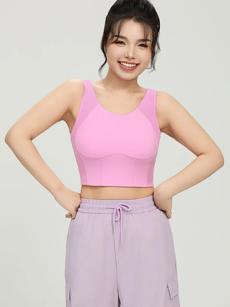 Large Size Sports Bra High Strength All-In-One Long Yoga Vest Breast-Retracting Fitness Bra New Vest Line Breathable Feature BH