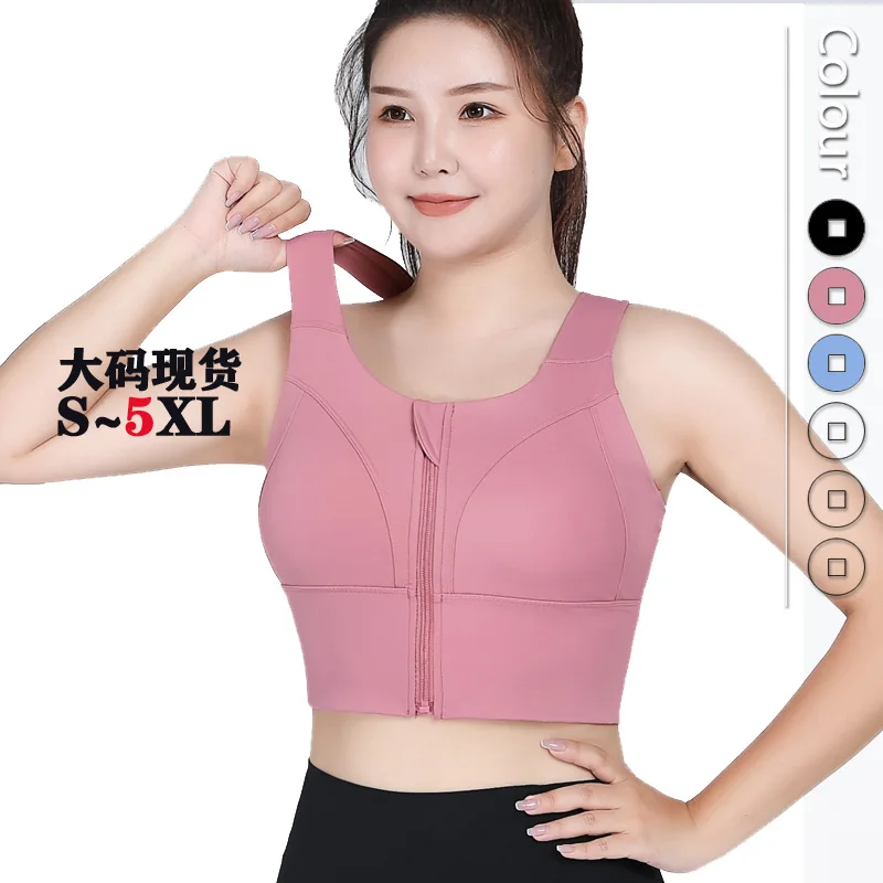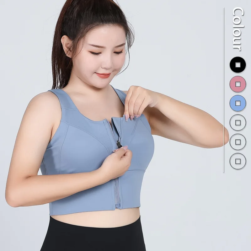 Plus Size Nylon Spandex Active Sports Bra Fitness Clothing Running Sports Bras for Women High Impact Support Zip Front Bra BH