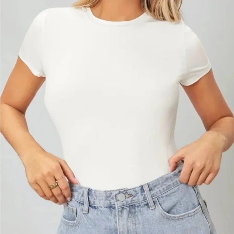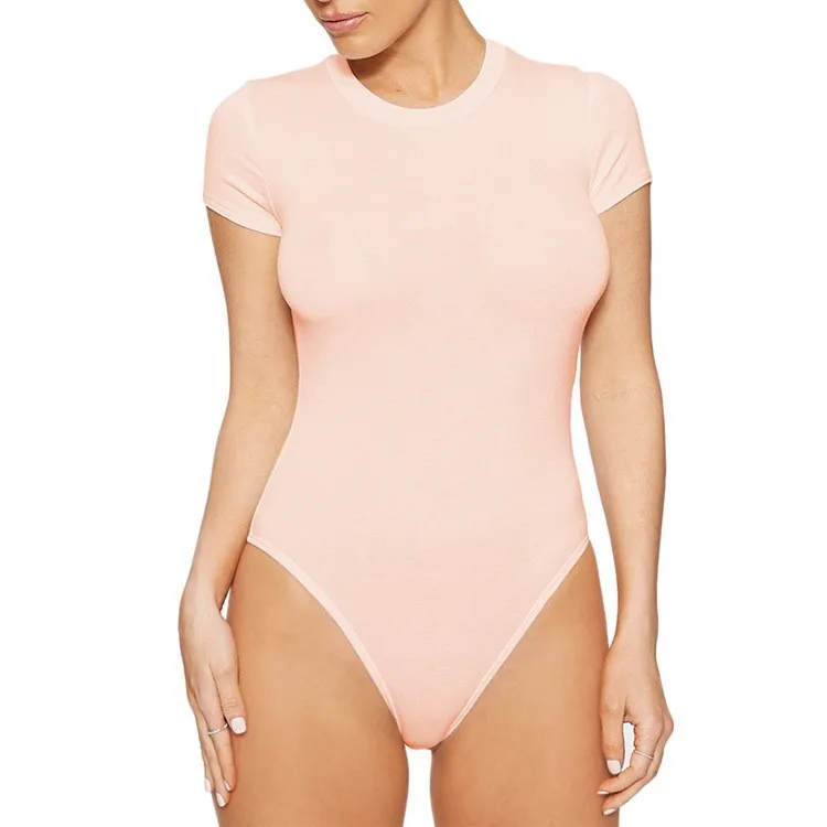 Custom Logo Women's Round Collar Seamless One Piece Short Sleeve T Shirts Basic Women's Bodysuits Shaperwear Jumpsuit