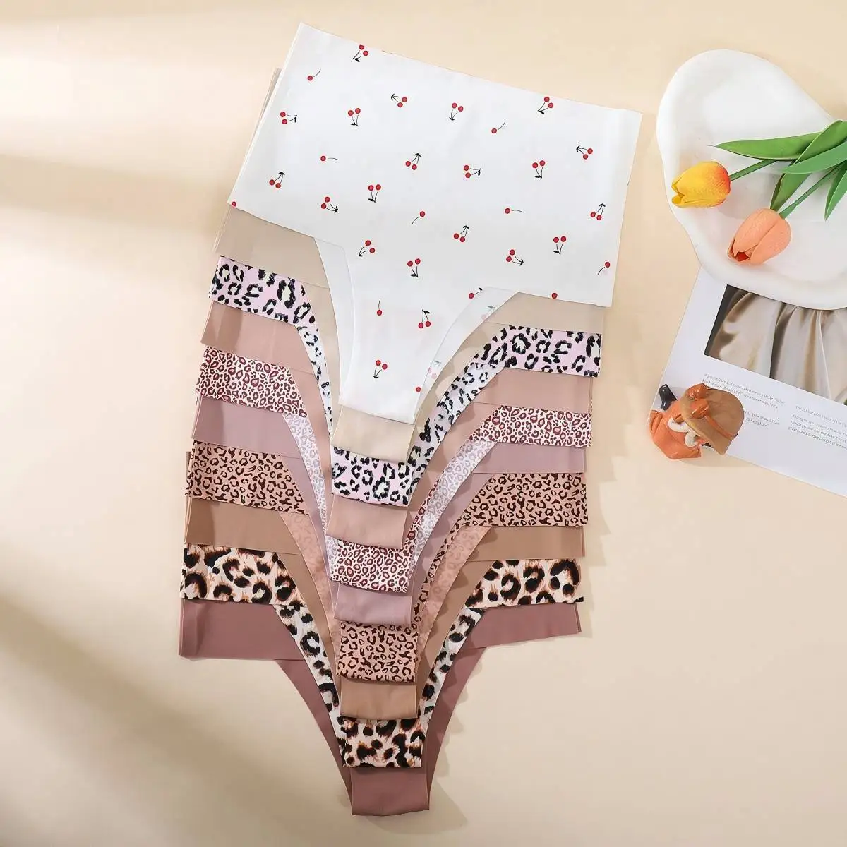 Leopard Print Women's Underwear High Waist Plus Size Ice Silk Briefs Peach Mid-waist Pants Seamless Bra Panties