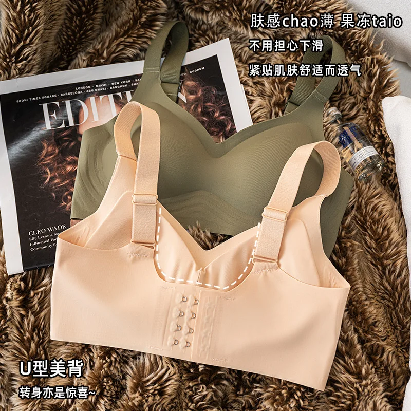 ODM/OEM Customized Logo Seamless Underwear Women's Wireless Push-up Jelly Glue Soft Support Bra Seamless Bra Panties