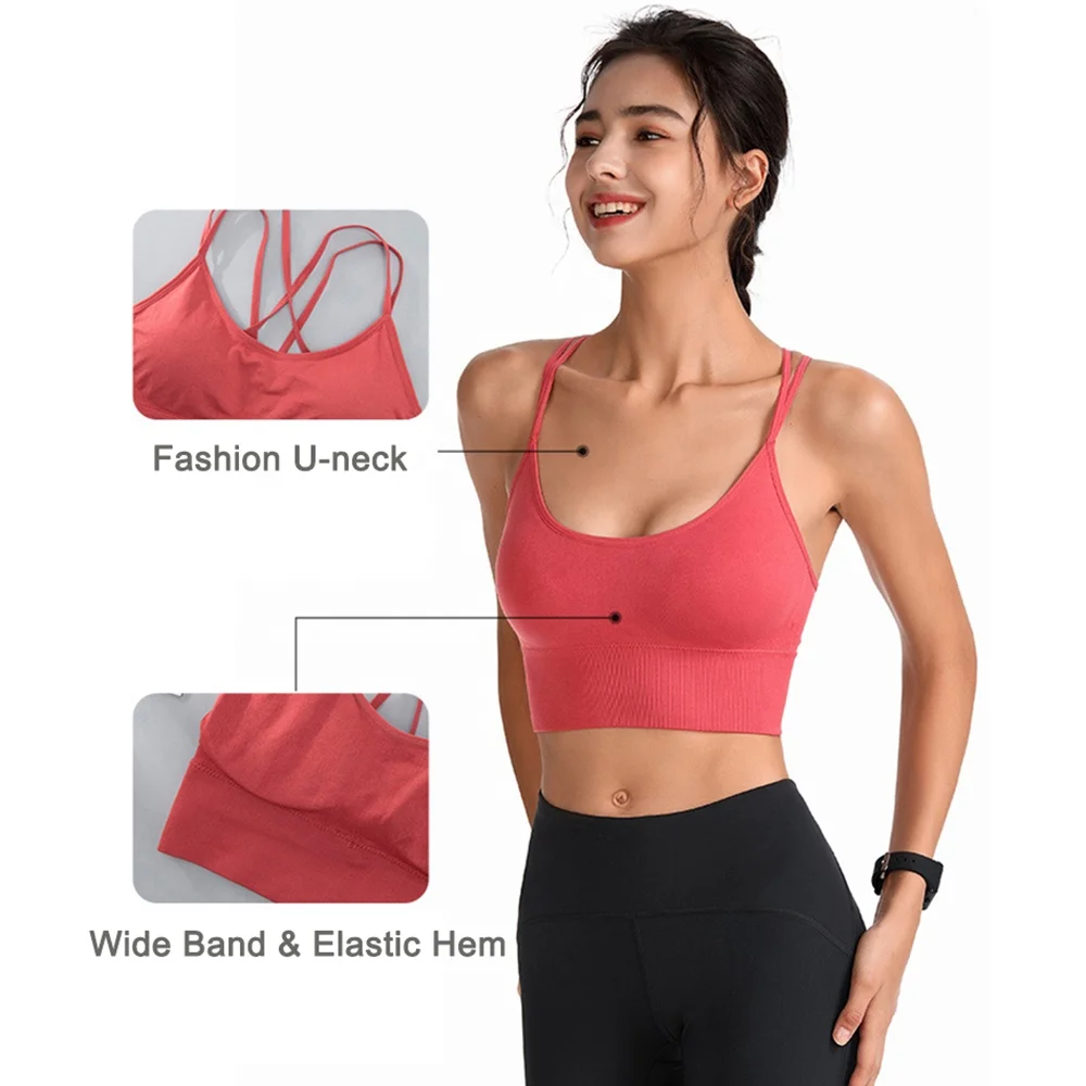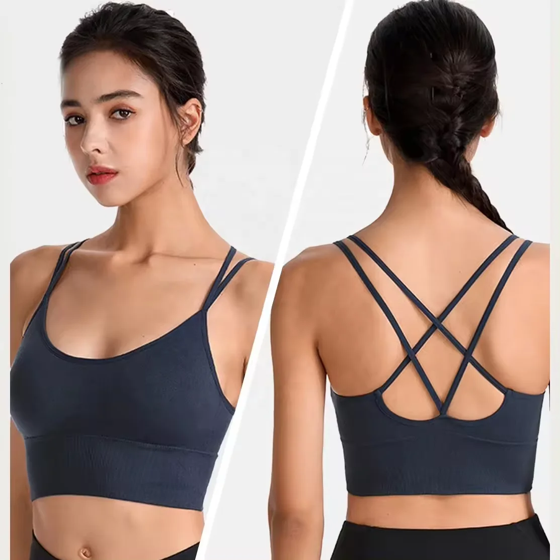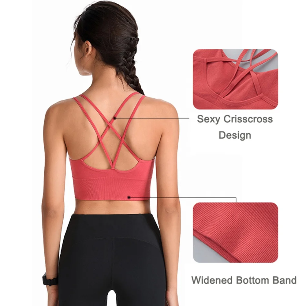 Custom Women Fashion Gym Exercise Fitness Yoga Crop Tops Sexy Seamless Bra Strappy Back Padded Plus Size Sport Bra