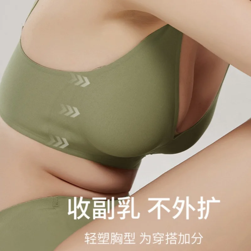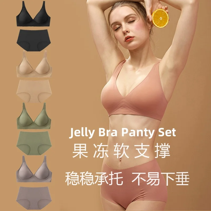 Brasier Para Mujer High Quality BH Anti-Sagging Thin Side Breasts No Wire Brief Cup Logo Jelly Seamless Bra Panties Set