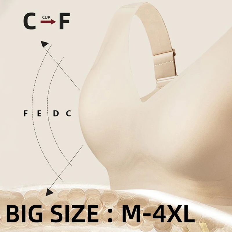 Wireless Bra Plus Size Women Underwear 4XL Wide Straps High Elasticity Ladies Gather Plus Size Seamless Large Cup Jelly Bra