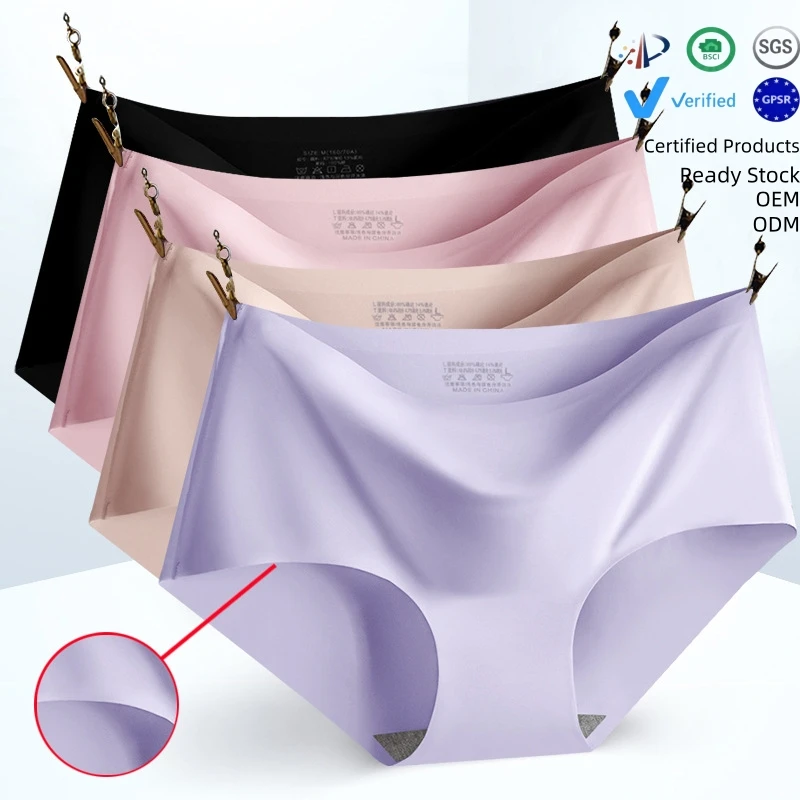 Women's Ice Silk Seamless Underwear Women-sheet Underwear Breathable Mid-waist Sexy Underwear Briefs