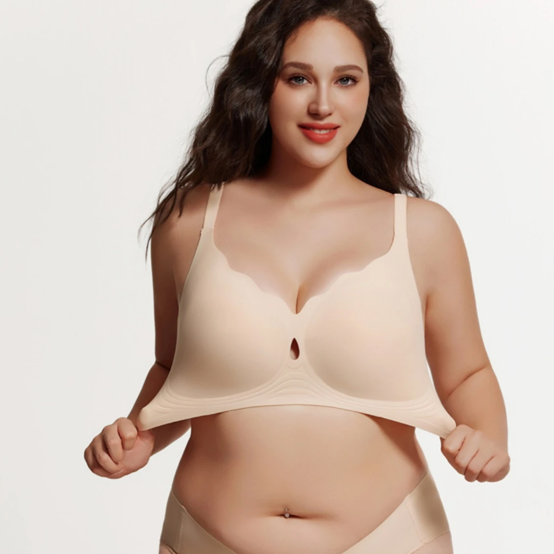 Customized Logo Seamless Plus Size Wireless Bra for Women Push up Bralettes Ladies V Neck Full Cup Padded Scalloped Bras