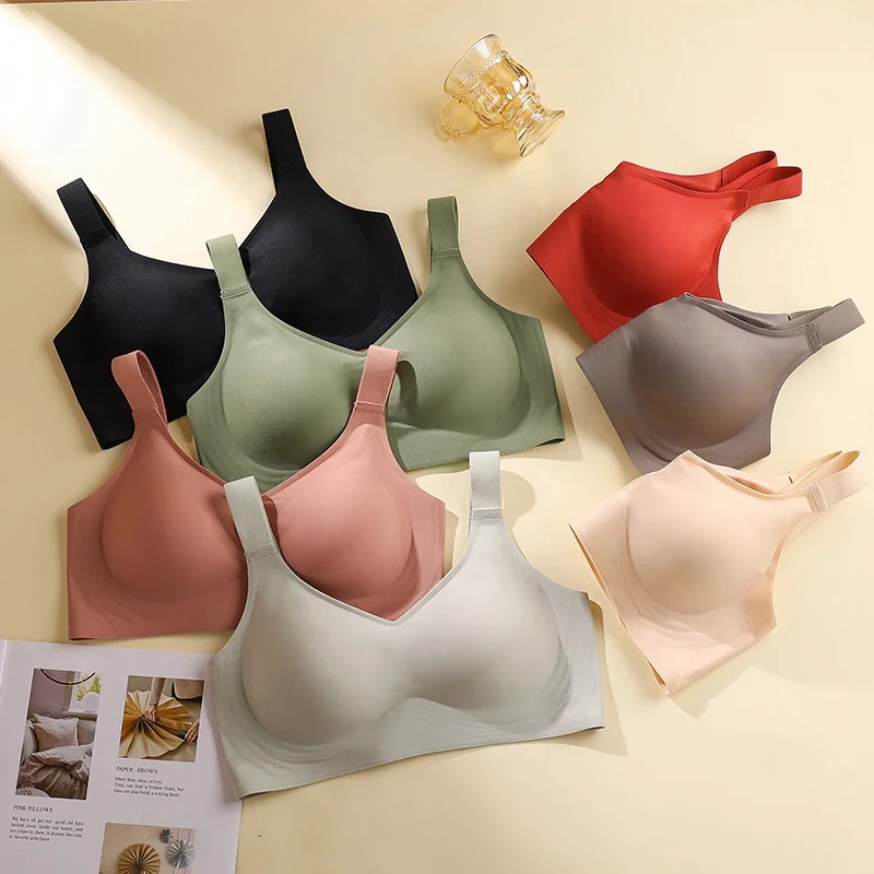 Custom Logo Morandi Color New Seamless Bra Women's Thin 3D Jelly Strip Ice Silk Plus Size Push-up Seamless Bra Women
