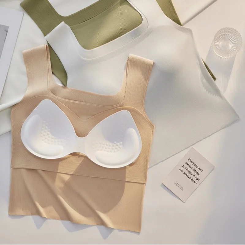 OEM Seamless T-Shirt Bra With Widen Straps Wire-Free Chest Pad Ladies Vest Slimming Workout Camisole One Piece Bra Camisole