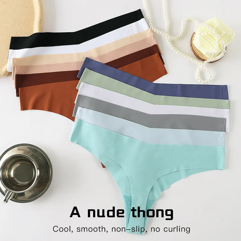 Factory in Stock Skin-friendly Women's Panties Solid Color Anti-Bacterial Crotch Moisture-absorbing Low Waist Seamless Tong