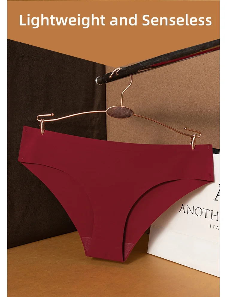 Seamless New European Traceless Ice Silk Underwear Breathable Mid Waist Bikini Large Women's Triangle Pants Women's Panties