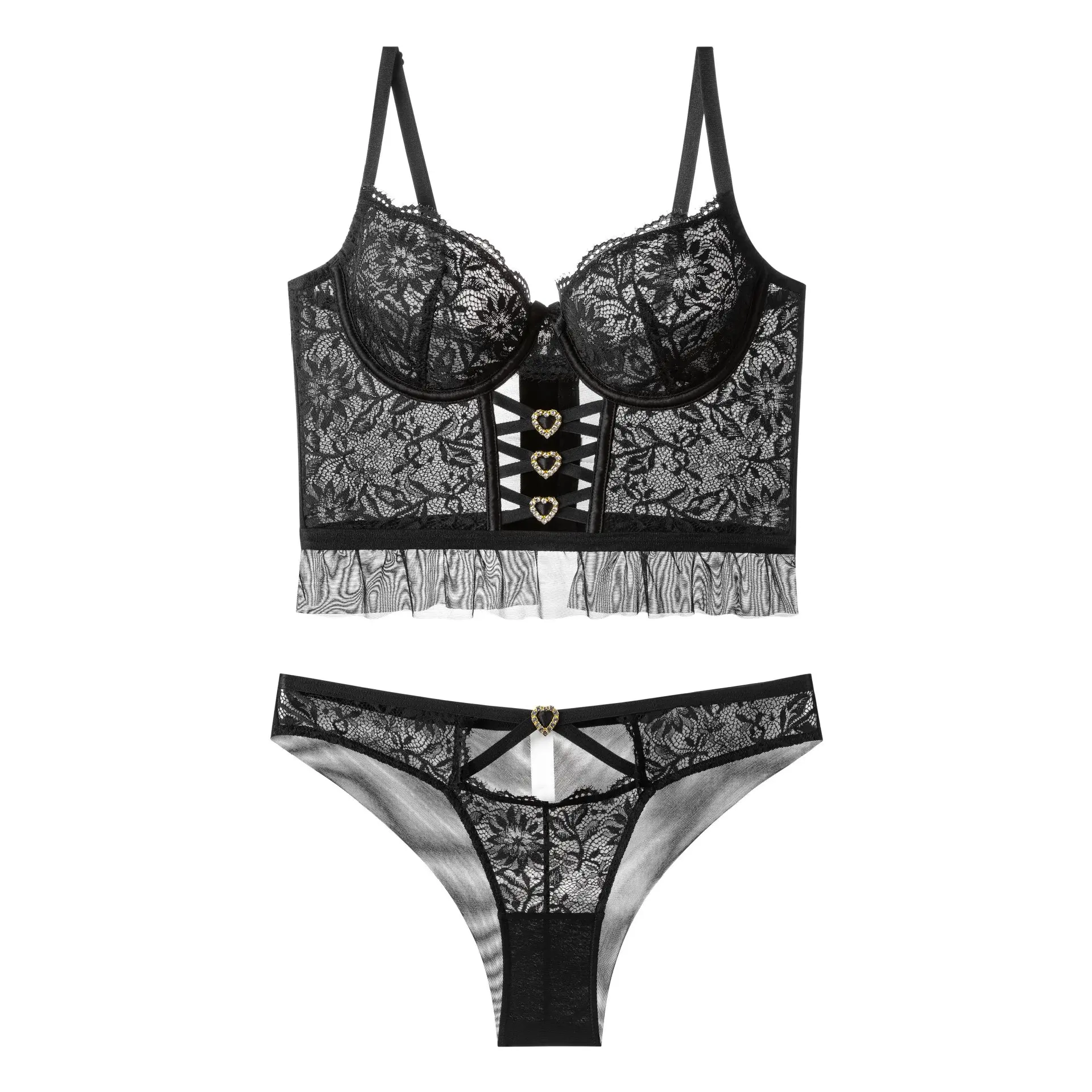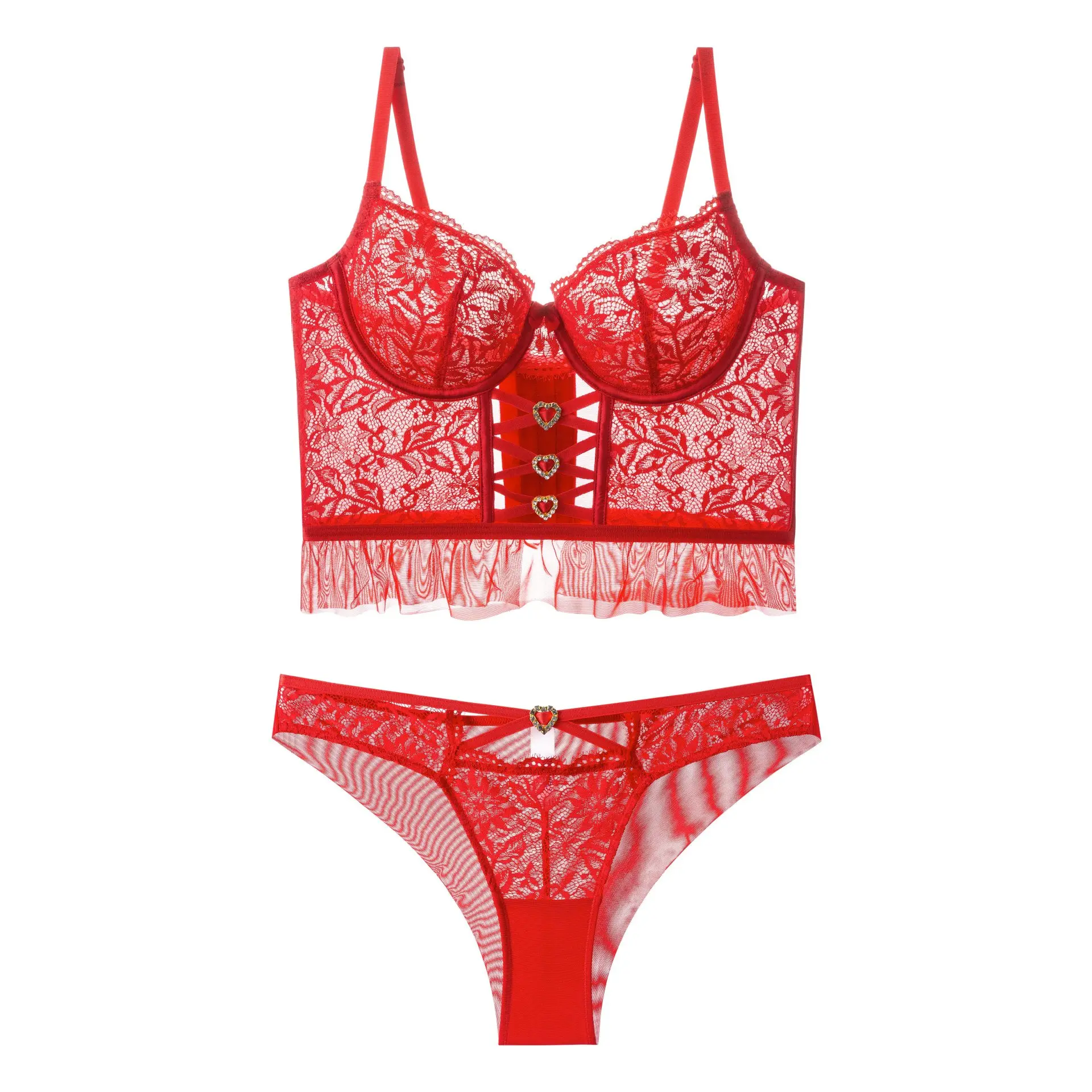 Lism Custom Large Bust Minimizer Plus Size Micro Shaping Fishbone Thin Bra Hollow Cross Lace Sexy Lingerie for Solid Bikini