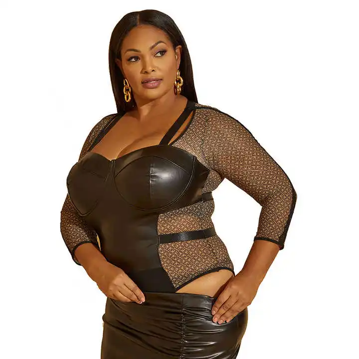 Lism Custom Paneled Geo Print Bustier Top Plus Size Bodysuit Lace Bodysuit