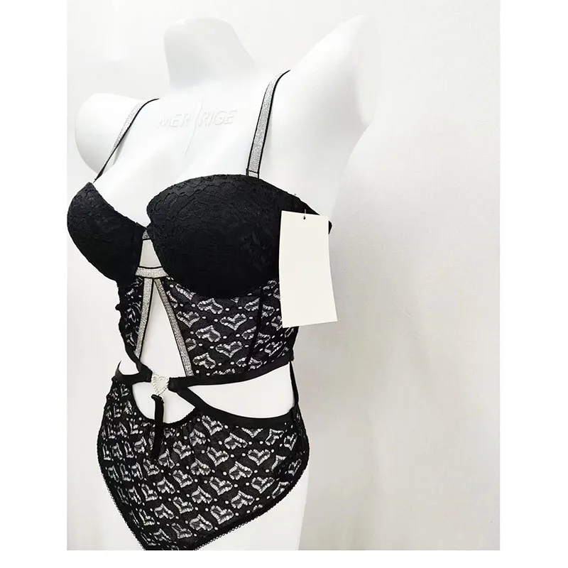 New Arrival Spandex Nylon Women Thong Panties Block Lace-up Women Nightwear Sexy Lingerie Set