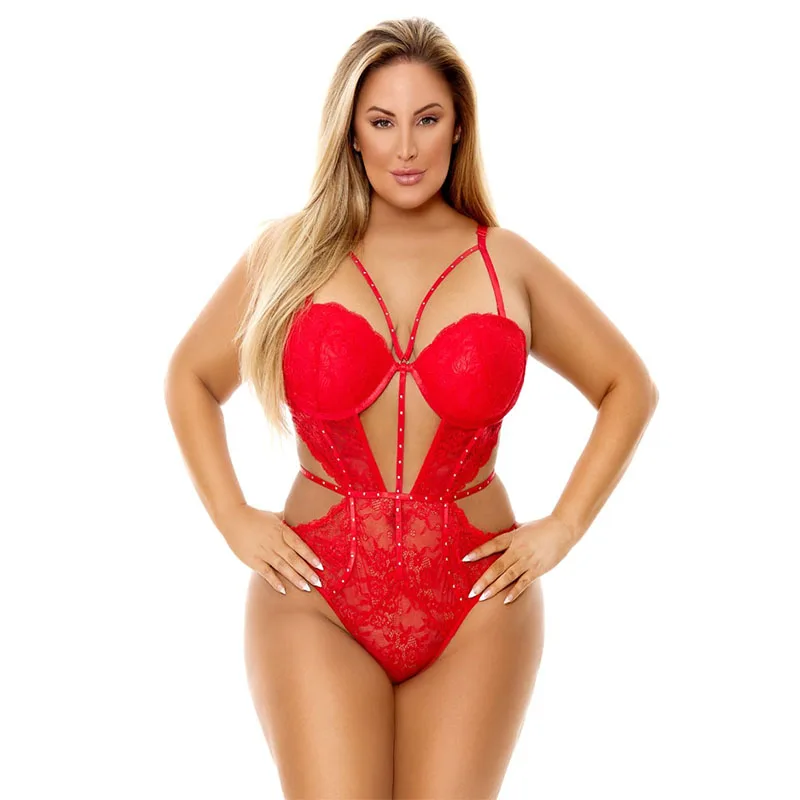 Lingerie for Women Cutout Lace Bodysuit Teddy Lingerie Babydoll Red Christmas