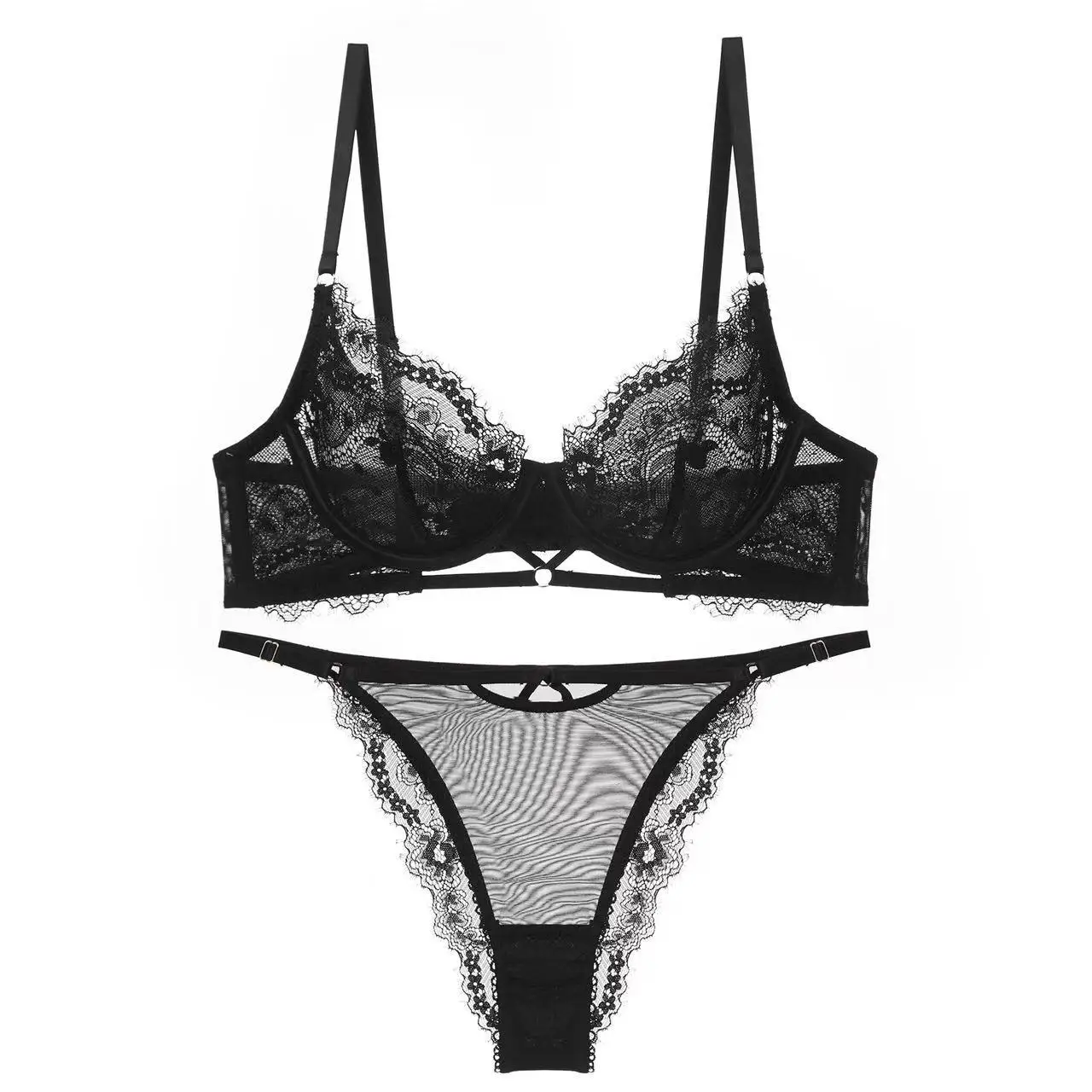 Lism Custom French New Autumn Floral Lace Push-Up Bra Set for Ladies Pure Color Slim Intimates Steel Ring Briefs Dyed Silicone