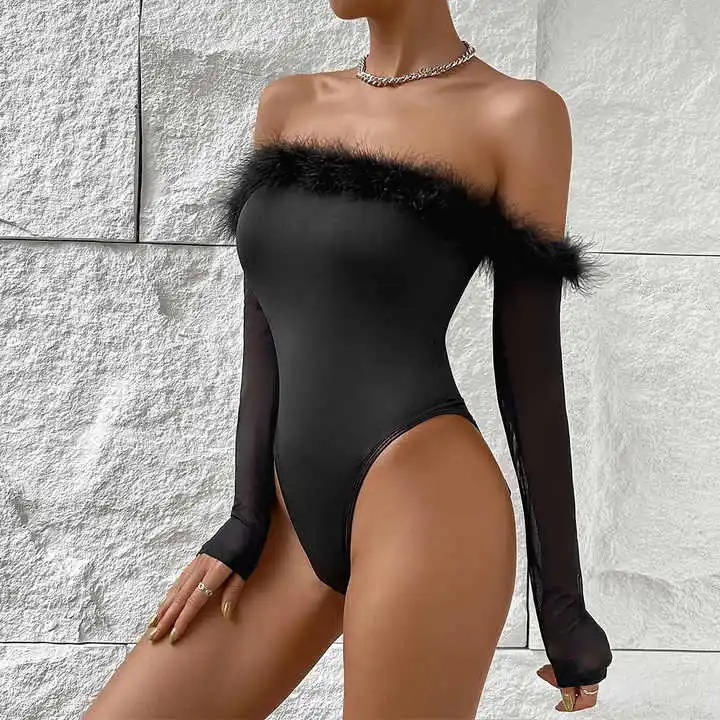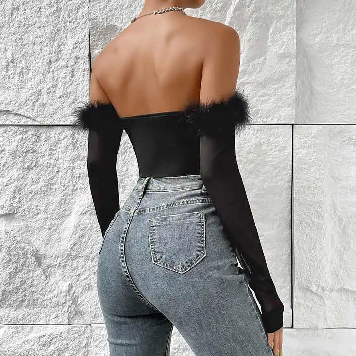 Lism Custom OEM ODM Ladies Fashion Black Long Sleeve Bodysuits for Women Lint off Shoulder Top Sexy Bodysuit