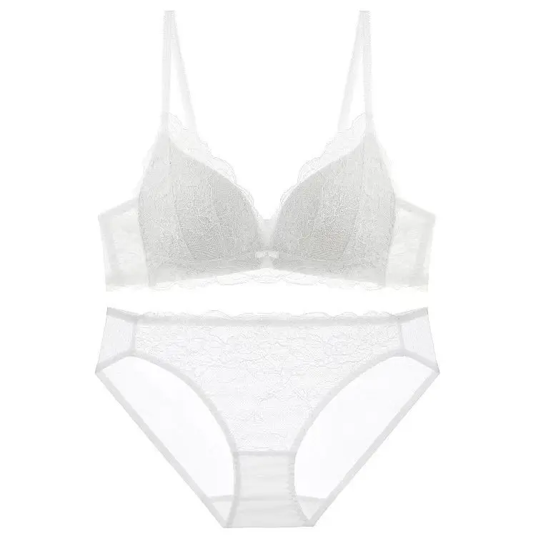 Lism Custom Women's Sexy Lace Backless Bra Set French Style Large Bust Minimizer Push-Up Thin Top Thick Bottom Bikini Wire Free
