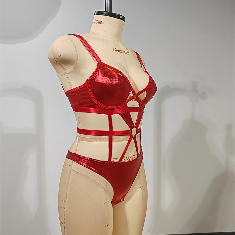 Women's Hollow Out Lingerie Set Sleeveless Stretch Snap Crotch Skinny Cami Bodysuits for Women