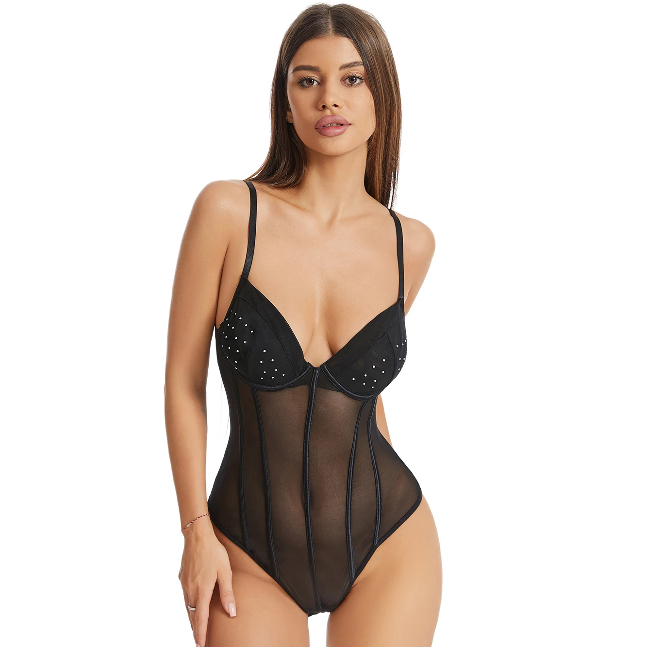 Lism Custom Print logo Elegant One Piece Sleeveless Transparent Ladies See Through Lingerie Black Sexy Women Mesh Bodysuits
