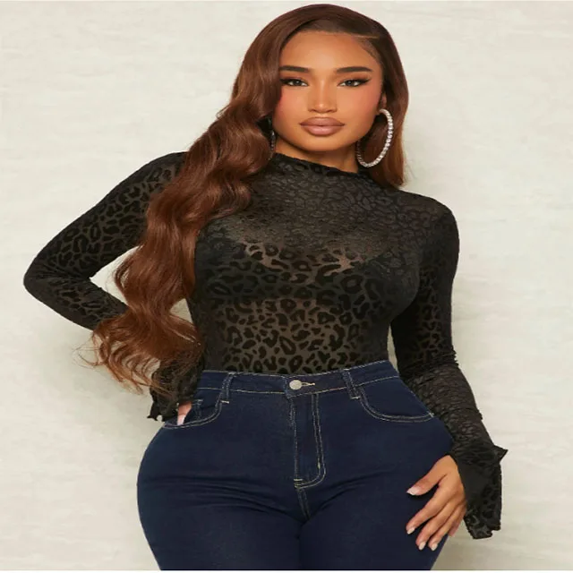 Halloween Sexy Plus Size Jumpsuit Mesh Pullover Lingerie Bodysuits Sexy Collar Lace up Black Bodysuit for Women Club Wear
