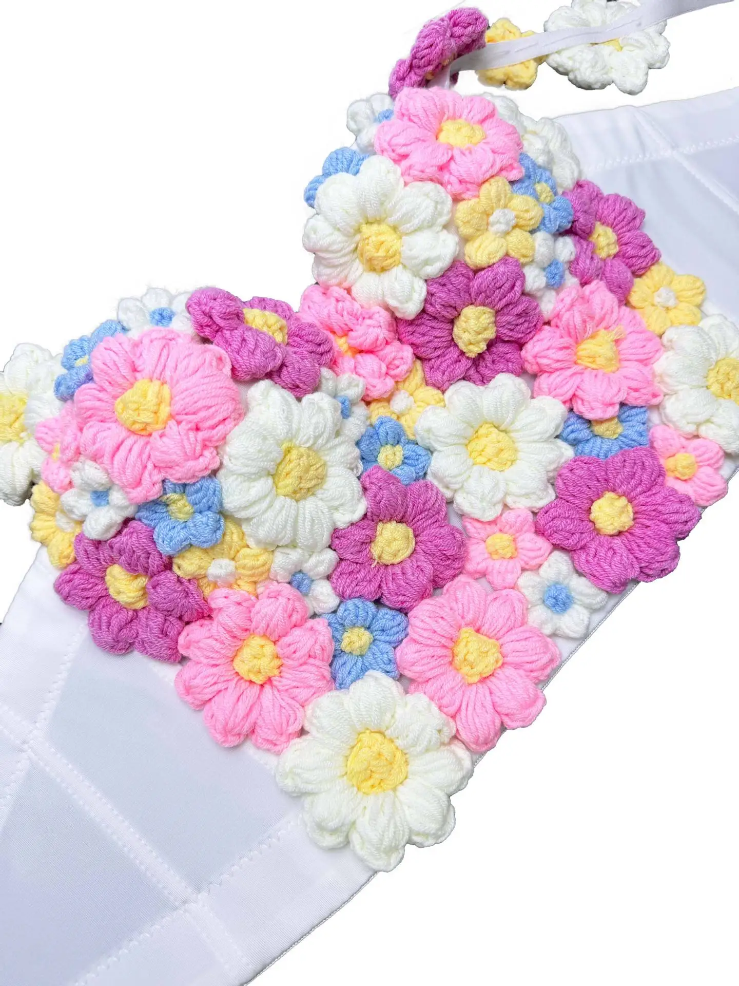 Lism Custom Cute Close-Fitting Fishbone Short Bra Three-Dimensional Wool Small Flower Ice-Cream Sexy Tops Firm