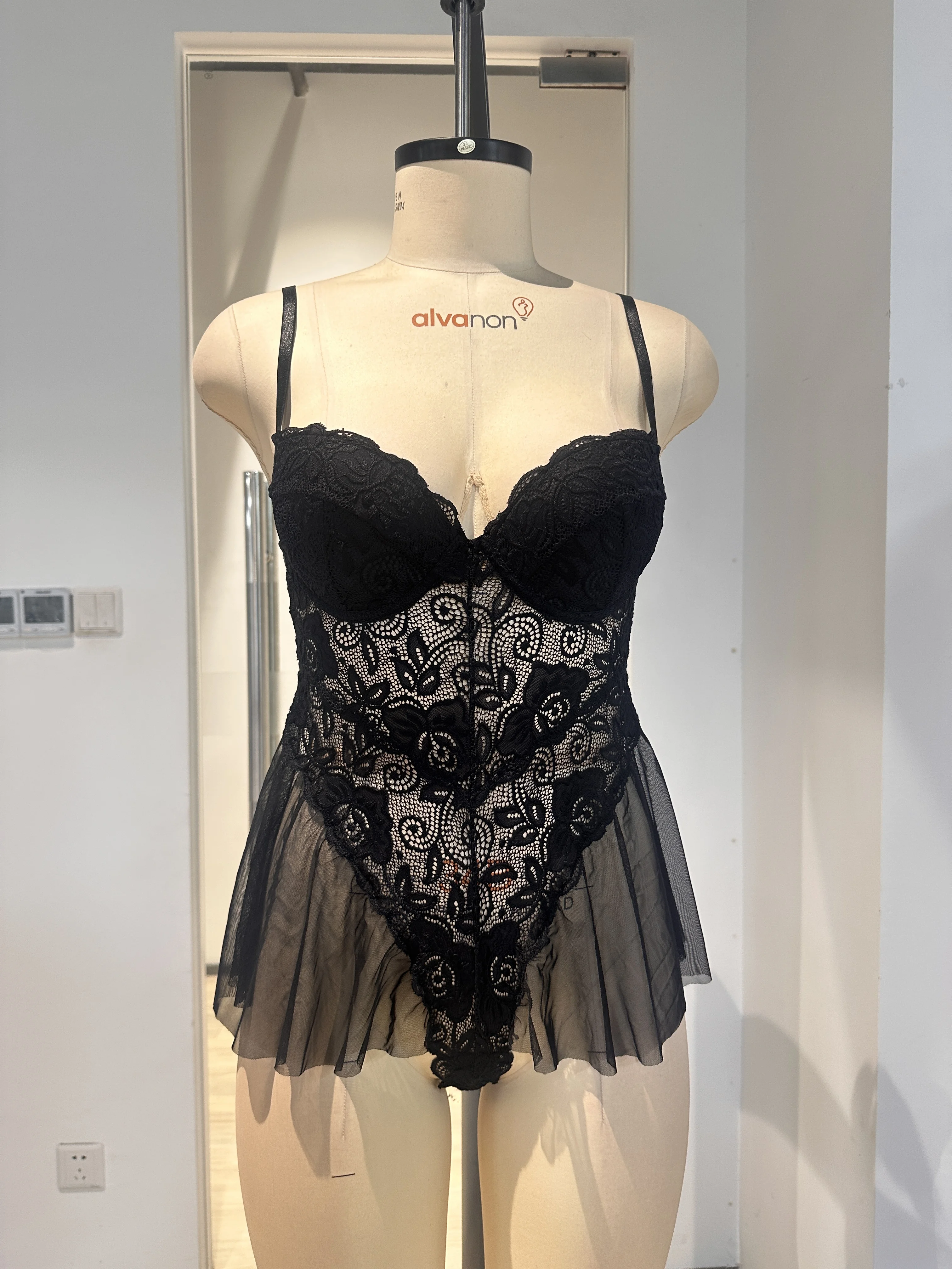 Lism Custom Women Spandex Fabric Lace Embroidery Decorative Erotic Lingerie Featuring Bows Straps Hollow