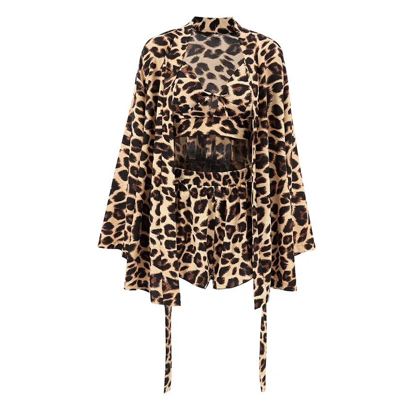 Under Lulu Custom European American Leopard Print Sling Cardigan Long Sleeve Shorts Elastic Waist Breathable Women Home Robe Set