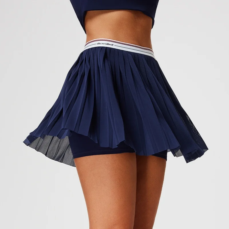 Under Lulu Custom Women High Waist Mesh Pleated Yoga Fitness Belt Lined Double-Layer Nylon/Cashmere Quick-Dry Casual Tennis