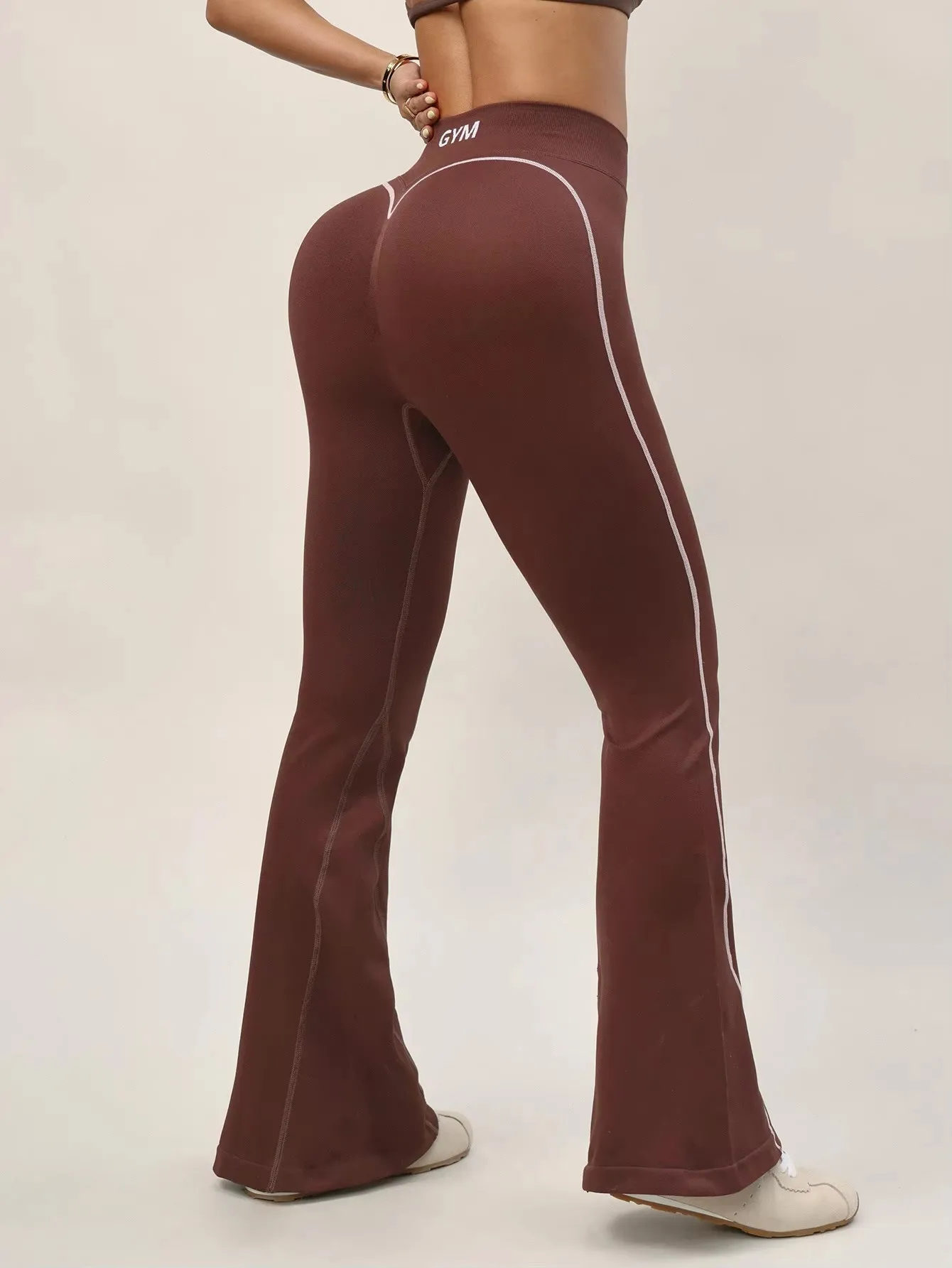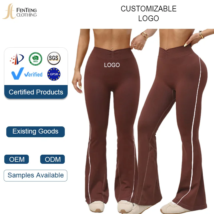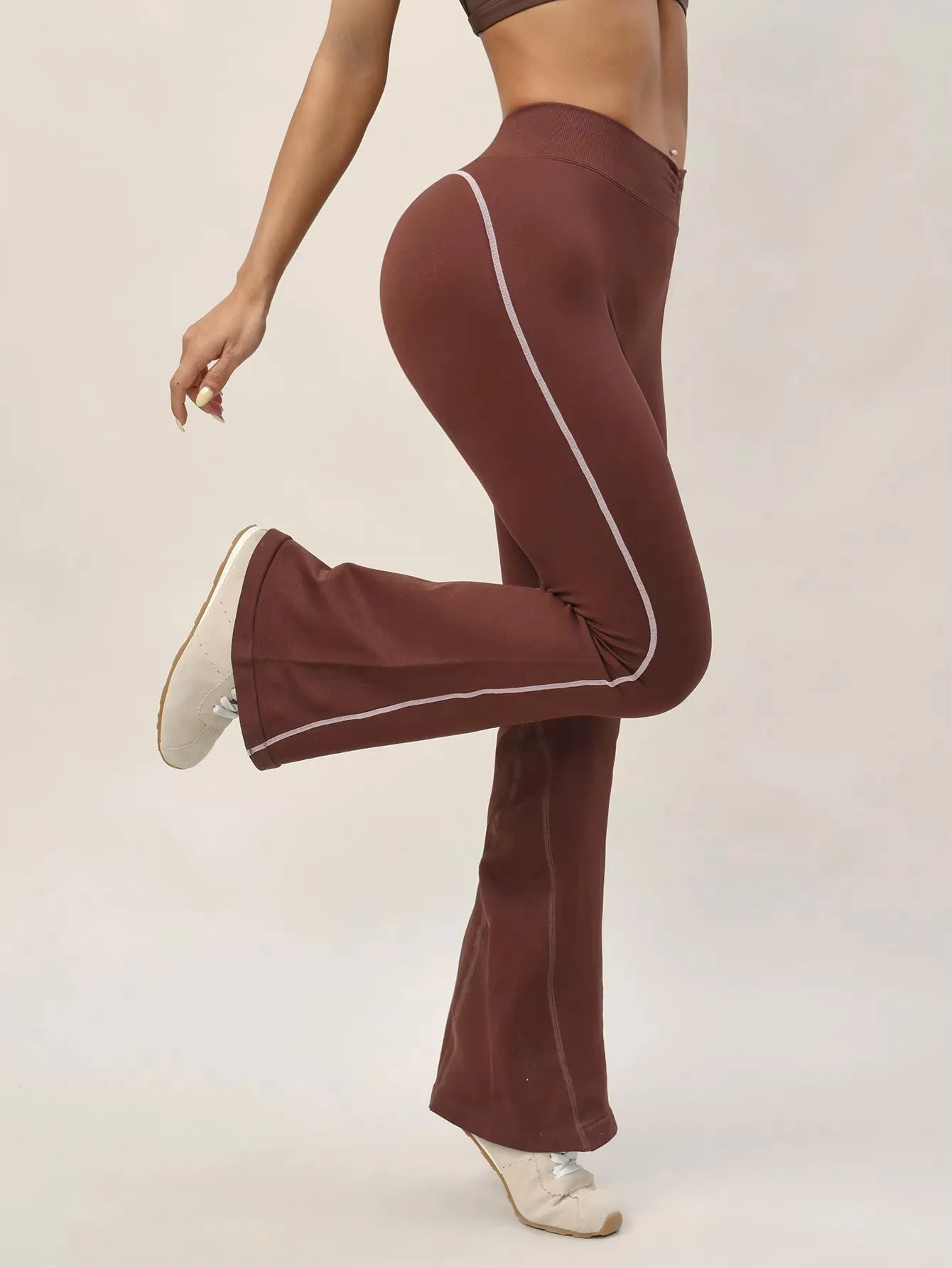 Under Lulu CustomWomen's High Waist Yoga Pants Spandex/Nylon Solid Side Stripe Flared Legs Full Length Wide Leg Yoga Leggings