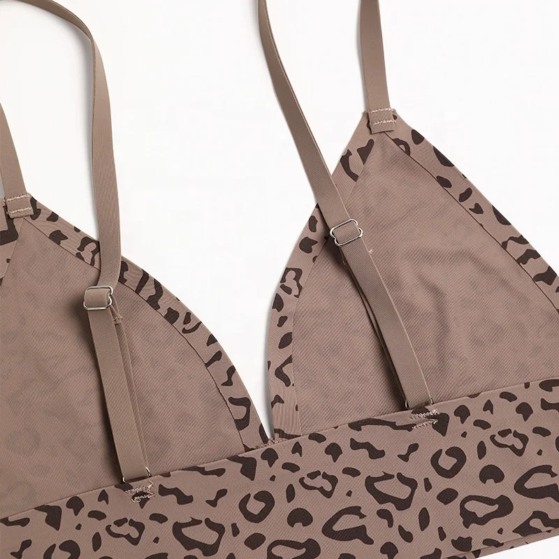 Factory Oem Fashion Design Leopard Printed Women Wireless Support Push Bra With Panty