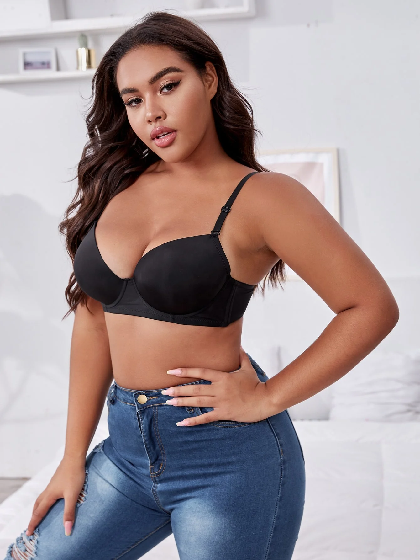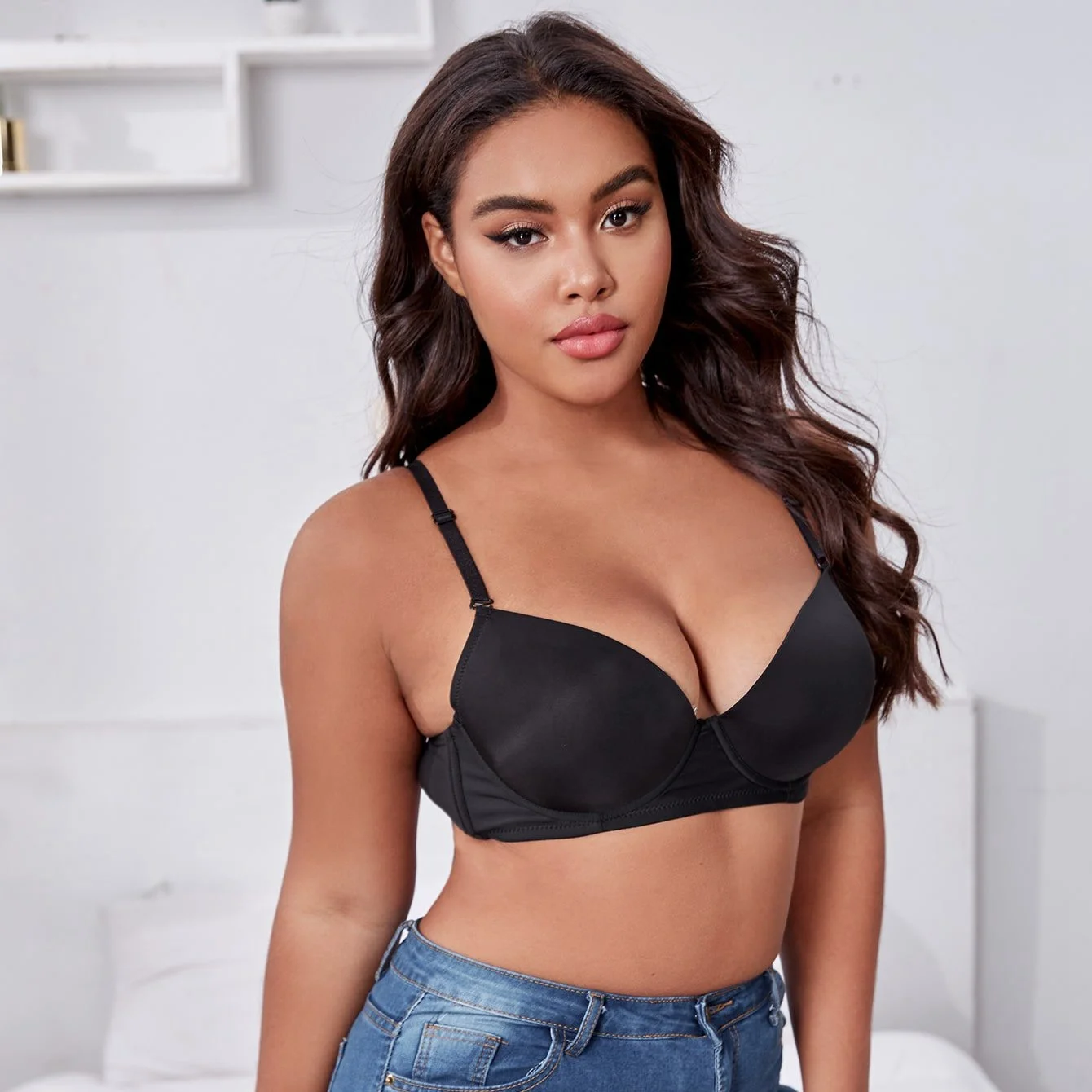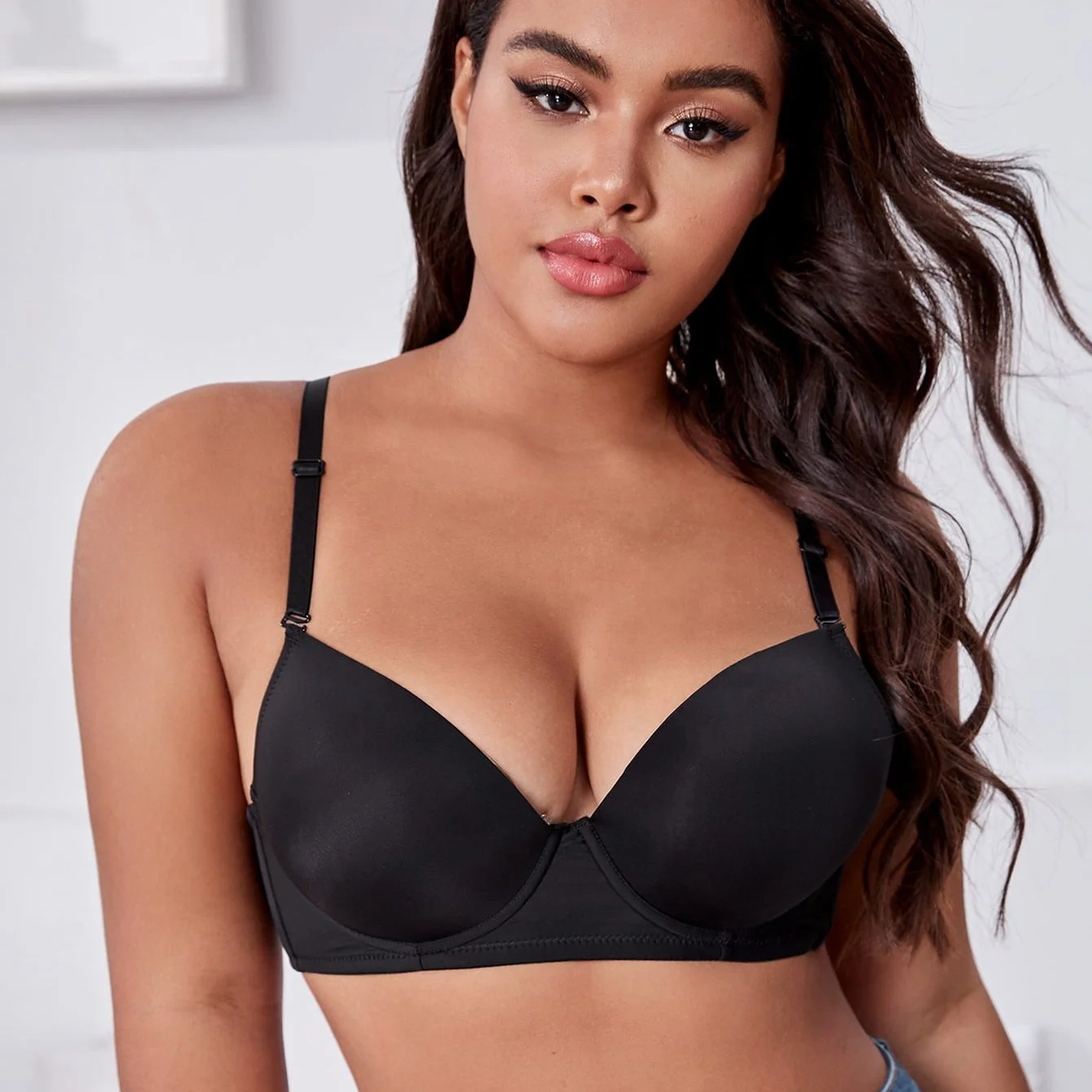 Good Selling Adjusted Straps Solid Black Color Push up Underwire Extra Large Bra Plus Size