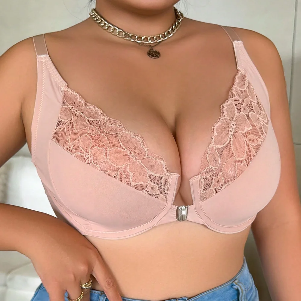 High Quality Beautiful Design Lace Floral Front Buckle Women Plus Size Bra