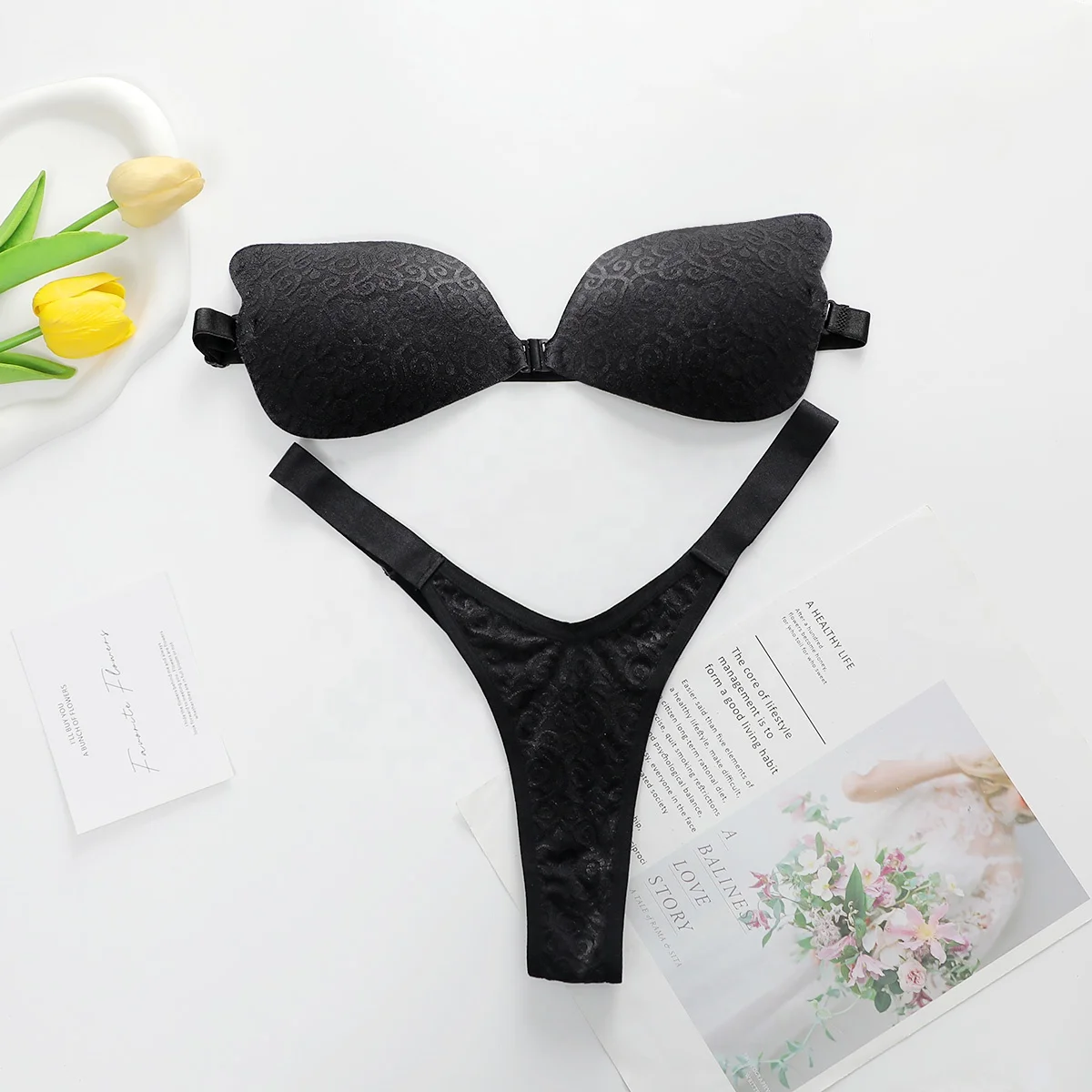 Custom Good Quality Factory Hot New Fashion Black Front Open Underwear Push up Bra Brief Sets for Women
