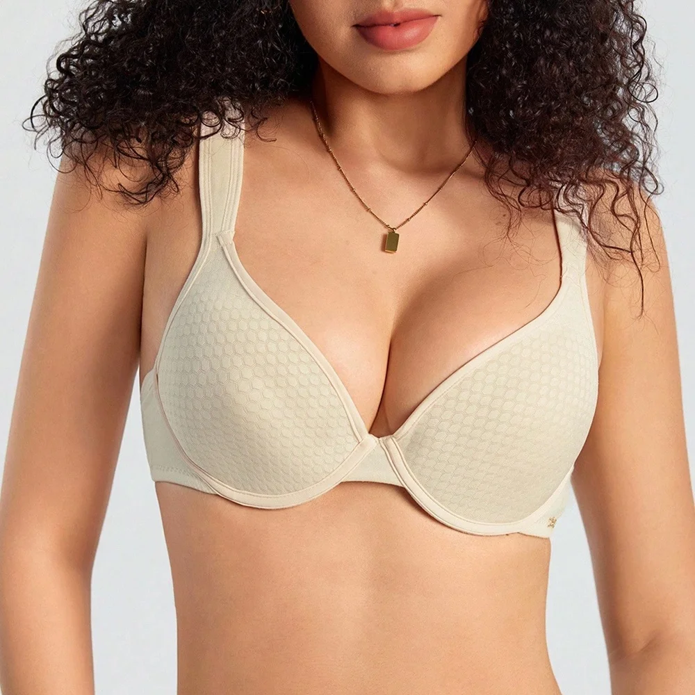 New Product Custom Full Cup Lady V Neck Support and Lift Push up Seamless Sport Padded Smoothing T Shirt Bra No Underwire