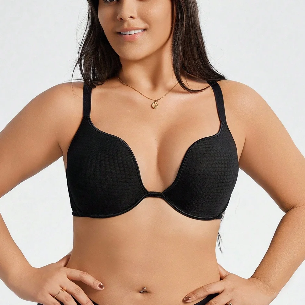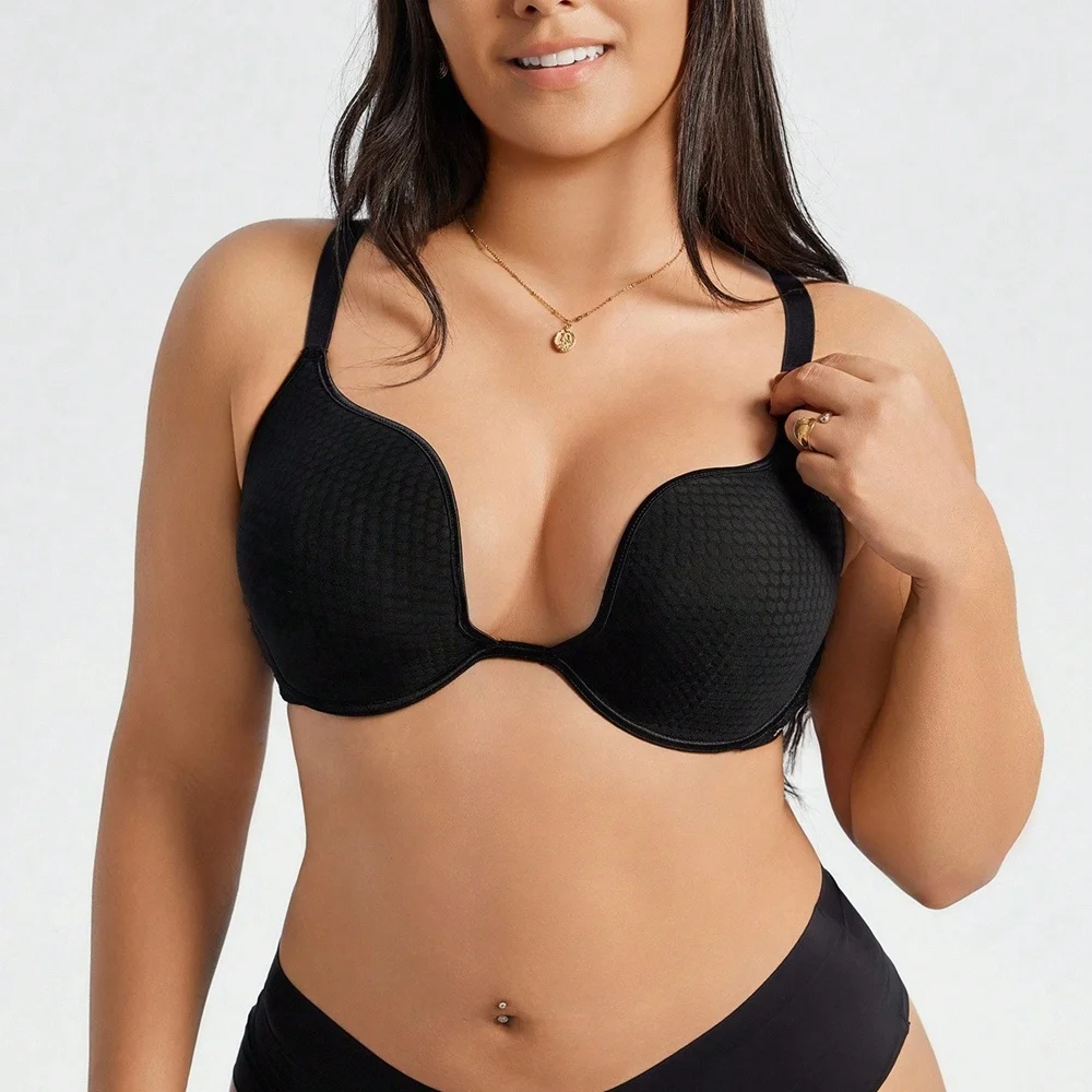 New Product Custom Full Cup Lady V Neck Support and Lift Push up Seamless Sport Padded Smoothing T Shirt Bra No Underwire