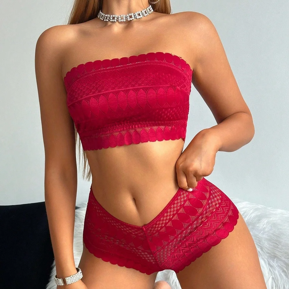 High Quality Sexy Woman Underwear Set Two Pieces Strapless and Wire-Free Featuring Lace Decoration