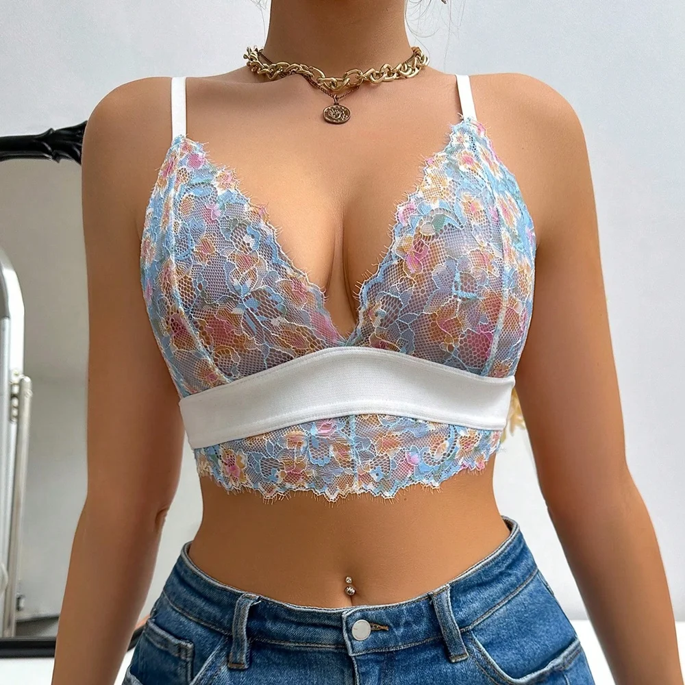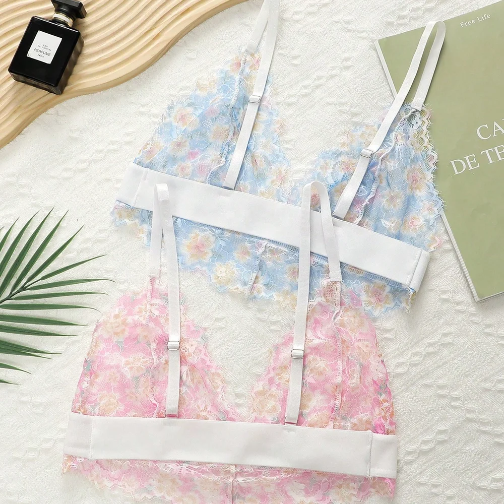 Pretty Design Sexy Flower Pattered Lace Wireless Bra Women Underwear