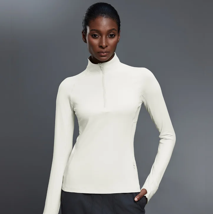 Wholesale Stand Collar Half Zip Gym Slim Fit Impact Sport Jacket Long Sleeve Running Yoga Top for Women
